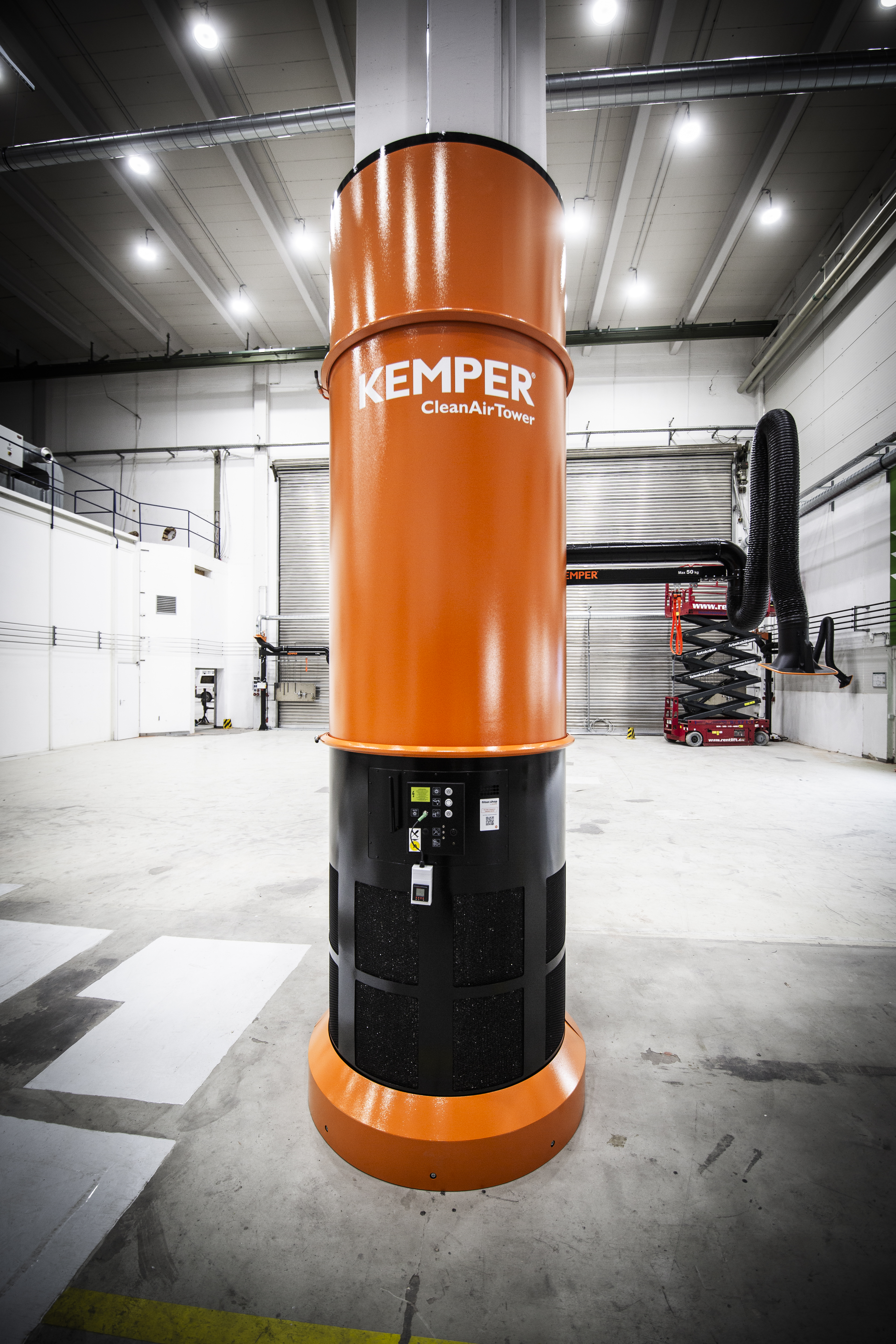 Die Hallenlüftung und Raumlüftung CleanAirTower kommt überall dort zum Einsatz, wo eine Punktabsaugung für Schweißrauch nicht ausreichend ist. Der Tower schützt Mitarbeiter und Maschinen effektiv vor Feinstaub beim Schweißen. Dabei wird die gereinigte Luft dem Raum wieder zugefürt. Die neue optimierte Luftführung besitzt einen besonderen Effekt und sorgt ähnlich wie beim Pinball dafür, dass an 10 oder mehr Stellen mögliche Funken und Partikel auf Stahlblechelemente aufprallen und ihnen damit effektiv Energie entzogen wird. Die Hallenlüftung verursacht nur minimale Luftverwirbelungen, weshalb die verschmutzte Luft nicht in unbelastete Bereiche gelangt. Der CleanAirTower arbeitet nach dem von der Berufsgenossenschaft empfohlenen Schichtlüftungsprinzip zur Hallenentlüftung.